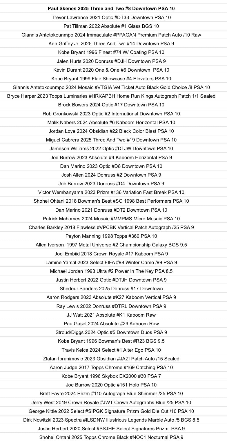 Multi-sport product 1 graded or encased trading card featuring all the hottest names in sports. Chase unique and exciting cards of players such as Aaron Judge, Shohei Ohtani, Lebron James, Michael Jordan, Patrick Mahomes, Tom Brady, Jayden Daniels, Victor Wembanyama, Jalen Hurts, Amen Thompson, Paul Skenes and more stars of yesterday, today and tomorrow!